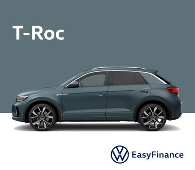 *Linked to current prime rate. Volkswagen EasyFinance offer calculated on recommended retail price with model specific service/maintenance/warranty plan/s included (whichever is applicable) plus 15% vat. Offer based on new T-Roc 1.4 TSI Design Tiptronic in standard specification with an average residualisation of some extras included, with 0% deposit, 10.75% linked interest rate, Guaranteed Future Value of R389,340, total cost of credit R492,7150. Information subject to change without prior notification. Unintentional errors and omissions accepted. Instalments include initiation fee of R1207,50 and monthly administration fee of R 69,00. All offers are mutually exclusive and cannot be combined with any other current offers unless specified. All finance offers are subject to credit approval from Volkswagen Financial Services South Africa (Pty) Ltd, a Registered Credit Provider NCRCP6635. Available in the Republic of South Africa only. This offer is calculated over 48 months and 80 000 km total contract limit. Rate and instalment may vary if deal structure differs from the example displayed in this advert. Offer valid until 31 October 2025 or while stocks last. Terms & conditions apply.